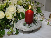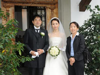 9月18日スイスルツェルンに到着しました!あいにくの天気で雨がかなり降っており、明日の挙式がどうなるか不安でしたが、景色やまわりの雰囲気が素晴らしいだろうなという気配を感じながら、タクシーで凄い山道を越え、ビュルケンシュトックリゾートに。挙式に備え、ゆっくりしようとも思いましたが、スイスルツェルンの街並みや雰囲気の誘惑にまけ、街までケーブルカーと船で移動し雨の中、ブラブラしていました。ホテルに戻ると日本から持参した妻のこだわりシルクドレスにかなりのしわがあり、何とかしようとホテルにアイロンをお願いしましたが怖くてできないといわれ、夜な夜なホテルスタッフの方にも協力いただき自分たちで頑張ってアイロンがけ。それでもまだとれず、現地コーディネータの和多田さんに電話で「アイロン貸して」と無理な(珍しい)お願いを聞いていただきご自宅のアイロンを翌日わざわざ持ってきていただきました。夜になると雲も少しはれ、部屋からは眼下に素晴らしい湖と街の夜景がみえスイスらしいカウベルのやさしい音がしずかに響いていました。挙式当日、朝から天気は雨。二人とも少しショックでしたが、山の天気の変化に期待しながら準備開始、現地の和多田さんに現地での貴重ないろんな話を聞かせていただきながらヘアメイクなどを完璧にしていただき、いよいよチャペルに移動です。雨の中なのでホテルで少し写真撮影をしてチャペルに移動。二人での挙式なのですが、かなり緊張していて顔がこわばっていました。式はアットホームながら静寂と清い雰囲気の中、和多田さんの通訳に助けられながら執り行われました。「Ya Ich Will」 というドイツ語での誓いの言葉を凄く緊張しながら二人で言ったことは忘れられません。最後に二人で消したロウソクは写真や宣誓書と一緒に家にいつまでも飾りたいと思っています。