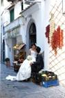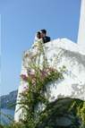 私は結婚式をアマルフィで行いましたが、世界遺産になっているアマルフィ海岸には、アマルフィだけでなくポジターノやラヴェッロなど美しい街が存在し、挙式もどの街で行うかで随分雰囲気が異なります。しかし、実はシロウトの私は結婚式を決めた当初、アマルフィ、ポジターノ、ラヴェッロの雰囲気の違いを余り考慮せず、同じ地域だから雰囲気も似通っているだろうという考えで交通の便だけで決めてしまいました。(リージェンシー・グループの表参道のオフィスで各街の写真を見せて頂いていたのにもかかわらず。)結果的にアマルフィの街の雰囲気が好みに合っていて、そこでフォトツアーが出来たのでよかったのですが。。 また、時期によっても雰囲気が異なると思われます。リージェンシー・グループで見せて頂いたブーゲンビリアと青い海が背景の写真がとっても美しかったので、勝手に「是非この写真を!」と思っていたのですが 私の挙式は10月で、ブーゲンビリアは余り残っていないかもしれない、とアドバイスを受けてしまった次第です。山田さんよりカメラマンに要望を伝えて頂き、ブーゲンビリアが咲き誇っている場所を探してもらい幸い写真を撮ることができました。 教会での挙式は荘厳な雰囲気でした。オルガンの音色が美しくドラマでよく耳にする「パッヘルベルのカノン」が流れてきたため、思いがけず何だか目頭が熱くなってしまいました。 |