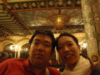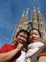 10月8日 バルセロナ観光 天候が心配でしたが、晴れました。この日午前中は、ヘリコプターでバルセロナ上空を飛ぶ予定になっていました。諸処トラブルがあり、一時は「予約の時間に間に合わないかも!?」という事態に・・・。かなり焦りましたが、なんとか間に合い、バルセロナの街並みを空から眺めることができました。ヘリの他には、観光バスで、定番のグエル公園やサグラダファミリア観光をしました。夜は、挙式会場の第2候補だったカタルーニャ音楽堂に行き、そのすばらしい建築と、コンサートを楽しみました。私達は疲れてウトウトしていましたが、スペイン人は深夜でも元気いっぱいに歌っていました。 |
