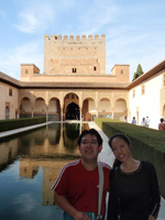 10月3日 マドリッドから列車でグラナダへ マドリッドからグラナダまで4時間半、特急列車で移動しました。朝食付きの車両を予約し、延々と続くオリーブ畑を眺めながら食事を楽しみました。13時半過ぎにグラナダ駅に到着。市内バスで、アルハンブラ宮殿近くのホテルまで移動しました。ホテルの内装には、アルハンブラ宮殿のようなタイルが貼ってあり、「グラナダに来たな〜」と感じました。夕方、アルハンブラ宮殿を観光し、夜は、タブラオにて、ディナーを楽しみつつフラメンコショーを見ました。フラメンコの後は、夜のアルハンブラ宮殿が見える、サクロモンテの丘にも立ち寄り、ライトアップされたアルハンブラ宮殿と、グラナダの街を眺めました。 |