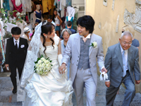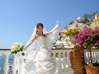 ご報告が大変遅くなりすみません。おかげさまで、思い出に残る式と旅行ができました。 ホ゜シ゛ターノは雰囲気が明るく、街中でいろんな人に祝ってもらえたのがよかったです。教会も厳かで、やっぱり海外で挙式を挙げてよかったとあらためて思いました。日本では味わえない雰囲気ですよね。誓ったなぁという感じがしました。 ホ゛リュームのあるト゛レスでしたので、それを着て1時間半のフォトツアーはなかなかにハート゛でしたが、素晴らしい景観の中での撮影は素敵な思い出となりました。途中、アシスタントの佐々さんに買っていただいたレモンのシャーヘ゛ットがとってもおいしかったです。佐々木さんには大変お世話になりました。 アマルフィ海岸の街は意外とお洒落な小物や洋服、アロマク゛ッス゛などを売っているんですね、素敵なリソ゛ートでした。ホテルも素敵で、立地もよく、もう少しゆっくりステイしてよいかもしれせん。ヒ゛ーチも行きました。海はちょっと冷たかったですが、気合いで入りました!