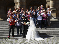 | 式は、日本のものとはまったくことなり、厳正ながらとても温かい雰囲気で行っていただきました。日本の式のように、マニュアル感を感じさせないやわらかい式は、まさに私たちの夢見ていたものでした。市役所の方もとても友好的ですべてが夢のような一日でした。山田様からの素敵なサプライズプレゼントもとてもロマンチックでうれしかったです。当日は快晴で、市庁舎前の広場や、街中、ブルク公園などいろいろな場所でフォトツアーの写真を撮っていただき、とてもよい思い出になりました。秋のとても良いシーズンだったため、観光客もたくさんいて、いろんな国の人に「おめでとう!」と言っていただくことができました。 | |||||