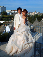 | あまりに楽しい時間だったので、14時から始まったランチは気付くと既に18時! その後はカメラマン役の弟を引き連れ、ドレス姿のまま宿泊しているトゥルッリのテラスで写真撮影をしたり、遅くまでアルベロベッロの街を散策しました。街は20時近くになってもまだ明るく、治安も良いため安心して散策できました。 | |||||