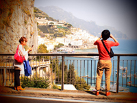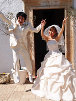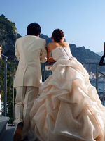 | そんな楽しいアルベロベッロでの時間はあっという間に過ぎ、翌日、ホテルのオーナーであるダニエラさん達に見送られ、家族旅行へと出発しました。その日はマテーラやポジターノに立ち寄り、アマルフィで宿泊。アマルフィのホテルでは角部屋を手配して頂いたようで、まさに絶景でした。その景色に大興奮した私たちは、翌朝早起きしてタキシードとドレスに着替え、これまた勝手にテラスでの写真撮影を敢行しました。 | |||||