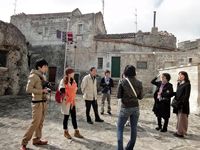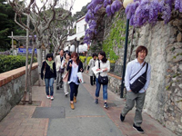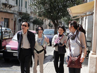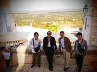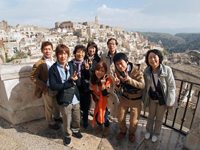 | 前日のヘアメイクリハーサルでは、現地アシスタントの瀧本さんのサポートのおかげで、きちんと要望を伝えることができました。そして、午後には現地ガイドのヒロエさん、ドライバーのアントニオと共に、オストゥーニ→マルティーナフランカ→ロコロトンドと、それぞれに特色を持つプーリアの街を散策しました。抜けるような白い街並み、眼下に広がるオリーブ畑の風景はとても美しかったです。 | |||||