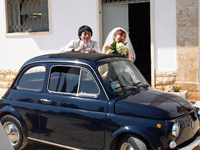 | そして挙式当日。曇りの予報も、見事に快晴。ヘアメイクは正直少し心配していましたが、前日にしっかりとリハーサルできたおかげで、安心して当日を迎えることが出来ました。 朝食を終えヘアメイクをしている最中、トゥルッリにはブーケを持ってきてくれるお花屋さんやドライバーさん、 カメラマンさんなど、次々と人が訪ねてきて、いつのまにかとっても賑やかに! 式の準備もすごく楽しい時間でした♪ 準備が整った後はトゥルッリ内で撮影。家族も集まり、カメラマンは5人に!チャペルへは小さなクラシックカーに乗って向かいました。トゥルッリを出た瞬間、現地の方や観光客の方々から「アウグーリ!!」と祝福の言葉をたくさんかけて頂き、とても幸せな気持ちになりました。 チャペルはトゥルッリから車で15分ほど走ったところにある、牧場の一角。日本では考えられないのどかな雰囲気のチャペルで、家族はみんなとても気に入ってくれました(家族にはチャペルのまわりに牧場にあることを言っていなかったので、先に到着した家族は、突然現れた牛や豚にとても驚いていました)。 優しい笑顔の司祭さんに見守られ、式はアットホームな雰囲気で進みました。オルガンとバイオリンの生演奏のなか、夢だった父と歩くバージンロードが叶って嬉しかったです。バージンロード5mは短いかなとも思いましたが、本番となると、まったく気になりませんでした。 | |||||