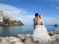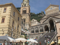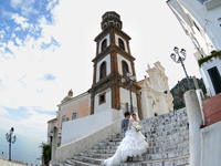 | ナポリは寝るために立ち寄ったというイメージなので、2日目に車でぐるりと巡ったくらいで、街並みを味わうとまではいきませんでした。しかし、イタリア最初の地としては、目に飛び込んでくる全ての建物、景色が新鮮で、非常に感動したのを覚えています。そして、とうとう、挙式の場所でもあるアマルフィに到着し、式の準備態勢に入りました。 | ||||||