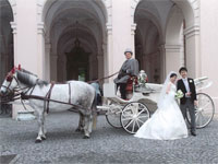 この度は大変お世話になりました。無事帰国致しました。 初めてお伺いした際、緑のきれいな土地で結婚式を挙げたいという希望をお伝えした所ミラベル宮殿を勧めていただきました。お話に聞いていた通り、荘厳な大理石の間や花が咲き誇るミラベル庭園、ザルツブルグの街並は大変美しかったです。また予約して頂いたホテルザッハーのバルコニーからはお城と川が見渡せ、朝も夜もとても美しい風景を眺めることができ最高の時間を過ごすことができました。あのような素晴らしい場所で結婚式を挙げられた事を、本当に幸せに思います。 |