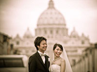 新婦がローマでの挙式に拘っていたのは、自身がローマに語学留学しており、ローマに対しての熱い情熱があり、思い出の場所でもあった点です。新婦のローマ挙式のイメージは、こじんまりとしたチャペルや小さな宮殿などで挙式を行うイメージでしたので、ローマでの挙式として場所を決めた後は、チャペルや宮殿をインターネットでひたすら調べました。その中で、ブランカッチョ宮殿という映画「ローマの休日」にて使用された宮殿にて挙式を行える事がネットでも検索でき、現地の取扱代理店にも直接連絡を入れたりもしました。しかし、同時に、城での挙式も可能であることが判明し、その城こそが「オデスカルキ城」であったのです。 ローマから遠方にあるオデスカルキ城は家族・親族の移動の事を考慮すると、非常に交通の便が悪い為、検討外であったのですが、ネットで調べれば調べるほど、オデスカルキ城の良さを痛感しました。また、俳優のトム・クルーズも数年前にオデスカルキ城での挙式を行っていることが判明し、一段と、オデスカルキ城への強いこだわりを持つようになってしまいました(新郎新婦共にトム・クルーズのファンではありませんが、トム・クルーズの挙式している写真などがネットに掲出されており、その写真が素晴らしかったことが大きく影響しました)オデスカルキ城での挙式が可能な挙式手配会社として、リージェンシー・グループ(株)が検索でき、早速、問い合わせを行いました。挙式場所の決定が12月末で、挙式自体が4/30希望でしたので、仮に日本での挙式であれば時間が足りないようなタイミングでしたが、海外挙式の良い点として、手間がかからないという面が非常に良かったのです。 |