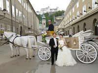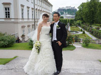 | 色々大変だったけれど、彼女と一緒に頑張ってきて本当に良かった!そう感じた瞬間でした。『折角なら、オーストリアで婚姻が成立し、法的効力のあるフォーマル・ウェディングにしよう!』そう決めたのは3月の始め。ザルツブルクは、花が咲き、気候も良い5月末頃が最高の時期と聞いていたので、タイムリミットは3ヶ月弱でした。 私達は、シンガポールに在住しており、且つ、彼女の両親も日本国外に居住しているため、フォーマル・ウェディングに必要な書類を日本から取り寄せるのも大変でした。時間が迫り、心の中では、『もう無理だ!!間に合わない!!』と思いつつも、ご担当頂いたサルヴァトーレ山田さんが温かく、大らかにご対応してくれたお陰で(本当に大変だったと思います)、何とか必要書類を制限時間内に提出する事ができ、挙式日が正式に確保されたと連絡を受けた時は、思わず『ヤッター!』と叫んでしまったぐらいです。しかし、それから結婚式まで、全てが順調に進んだわけではありませんでした。考え方、ペース、こだわりの違いから何度となく彼女とケンカしたのも事実です。 | |||||
