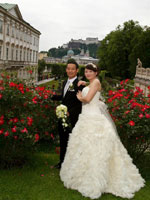 | 数日前までは咲いてなかったミラベル庭園のバラの花も僕達を祝福してくれるかのよう式当日は満開となり、沢山の観光客が祝福してくれるなど、想定していた以上に上手くいった部分もありましたが、ザルツブルク、ミラベル宮殿と言う最高の舞台で、僕たち二人が主役を演じる事ができたのは、現地のコーディネーター、通訳、ヘアースタイリスト達のおかげで、そのような様々なサポートを頂けたからこそ、主役に徹する事ができたのだと思います。 | |||||