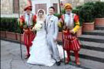 | 宮殿に到着すると、ヴェッキオ宮殿での挙式を決定づけた衛兵さんとご対面!フレンドリーでチャーミングなお二人で、鎧にも触らせてくれたし、槍も持たせてくれました☆式は厳かな場所の中、和やかな雰囲気で行われ、最後に役人さんより温かいお言葉をいただきました。親族は呼んでいないので、一般的な挙式のイメージとは違って少人数ではありましたが、私たちにとっては感慨深い、一生の思い出になる素敵な挙式となりました。 | |||||||