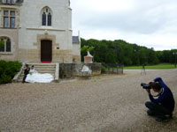 | 式の時のヘアスタイルはプロのヘアスタイリスト(フランスにお住まいの日本人女性)にしていただき、希望通りのヘアスタイルとなりました。また、ブーケも事前にお願いしていたとおり、とても美しく華やかなブーケでした。カメラマンのエルベさんはフランスのユニークな男性の方で、写真撮影も大変おもしろく、楽しくしていただきました。あまりにノリノリで、予定の時間を大幅にオーバーするほど、たくさんの写真を撮っていただきました。通訳兼アシスタントをしていただいた八塚さんも、親切に優しくアドバイスしていただき、セレモニーマスターも合わせて、とても穏やかな、そして楽しい1日を過ごせました。 | ||||||