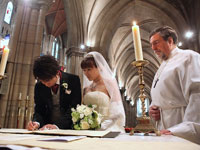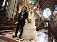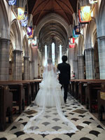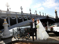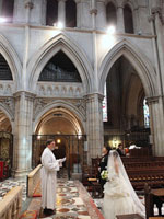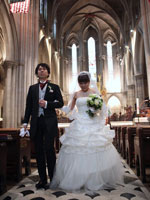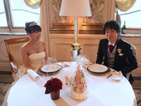 | パリを代表する名所でフォトツアーをしながら、アメリカンカテドラルに到着。教会では、2人だけのために演奏されるパイプオルガンの中バージンロードを歩き、厳格で神聖な中で、式が執り行われました。馬車で"Le Meurice"に戻り、ホテル内にある3つ星レストランでウェディングランチ。無理言ってリクエストした"LADUREE"のマカロンタワーもばっちりテーブルに飾られていました。とてもラグジュアリーな一日を過ごせました。 | |||||