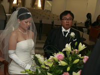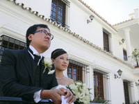 予定通り、役所での結婚式!いきなり!カメラマンのホセさんの独壇場で次々に各場所で撮影&ポーズの要求が凄かったです。そして、結婚式は、市庁舎内の会議室で執り行いました。オルガンとバイオリンの演奏でムードも盛り上がり、セレモニーマスターの気持の入った宣誓は、本当に良かったです!! |