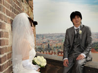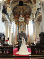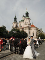 2012年9月17日にプラハの聖ミクラーシュ教会で挙式しました。関西に住んでいるので山田さんとは基本的にメールでのやり取りでしたが、レスポンスの速さや、出来る事出来ない事をはっきり教えて頂けて、全く不安にならずに安心してお任せ出来ました!!プラハの街に到着して、まず思ったのが、とても綺麗でおとぎ話しの世界みたいでした!旧市街はどこも古い素敵な街並みが広がっていて、見惚れてしまいます。聖ミクラーシュ教会もそんな素敵な旧市街の真ん中にあり、本当に本当に素敵な教会です!!宿泊したホテルも豪華ですし、部屋からの眺めも最高で、プラハ城も見えたので、日の出をベランダで眺めたりしました〜。