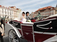 | 2人だけの挙式でしたが、寂しいと思う事はありません!!携わって下さった皆様からお祝いして頂けたし、教会の外に出たら、その場にたまたま居合わせた現地の方や観光客の方から歓声と拍手や『おめでとう!』と声をたくさん掛けて頂けました。本当に色々な国の言葉や人から祝福されて、とても嬉しかったですし、感動しました。馬車で旧市街を回って、その後は写真撮影。その先々でもお祝いして頂け、これもとってもいい思い出です。