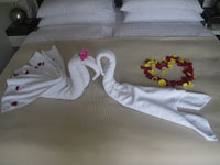 | ランチも終わり、ホテルに帰ったら、部屋にシャンパンやフルーツが準備してあって、お花やキャンドルで飾り付けして頂けてました。全然予想してなかったので、すっごく嬉しくてはしゃいで写真をたくさん撮りました〜。なかでも一番、わ〜〜〜!!と喜んだのはベッドルームのスワンの飾り。これは本当に驚いたし、可愛い〜〜を連呼しました。チェコは本当に人も街も全部素敵で、聖ミクラーシュ教会で挙式出来たのは幸せです。