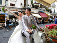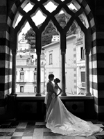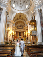 | 夜のウェディングディナーでは、セリーヌ・ディオンのタイタニックの曲のピアノ演奏に合わせてケーキカット、美味しいという言葉も出ないほど美味しい料理(笑)、二人でたっぷり、酔いしれました。気付いたら3時間以上経っていました!!その晩私は眠れない程、興奮していましたが主人はぐっすり(※どこでもいつでもZZZ・・・) 前日は豪雨、朝も日差しはあるものの、雨がぱらつき、不安でしたが何とか晴れてくれました!!!お部屋での準備は、流石!!プロのヘアメイク!!わずか45分で完璧に仕上げて頂きました!!そして、そしてカメラマンのお二人は、私がバレリーナ(結婚して所属していたアカデミーは辞めました)だということに、直ぐ気付いて下さって&私たちをとっても気に入ってくださって、色々撮影してくれました。もう撮影の時間が終わりでしたが、バレエのポーズで一枚取って欲しいとお願いしたところ、何枚も撮って頂きました。本当に、本当に、光栄です。主人より私の方が撮影時間が長く、主人は羨ましそうにしていましたよ(笑) | |||||