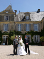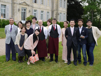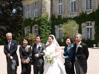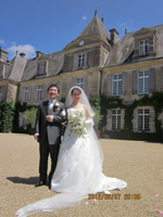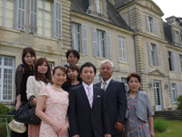 パリ初日のホテルはエッフェル塔の近くのホテルを手配して頂いたお陰で、初日から観光気分満載となり、家族・友人は大喜びでした。 我々は挙式前日でしたが、緊張することもなく、観光気分でリラックスできました。翌日、TGVとバスにて移動をしましたが、大人数であったため、修学旅行のように賑やかな移動となりました。これだけの人数で旅行するのは、おそらく今後の人生ではないなと思いながら、キュルゼー城までの道のりを楽しみました。キュルゼー城では、穏やかなスタッフの方々に囲まれ、まさにアットホームで心地良く滞在することができました。「挙式前夜祭」ということで、壮大な景色の中、お庭で乾杯をしました。17名全員で乾杯をすると、しばらく歓談し、お城をバックに記念写真を撮りました。 お城はどこを撮っても絵になる・・・と思いました。その後、ゆったりとディナーをしながら、前夜祭は夜遅くまで開催されました。 |