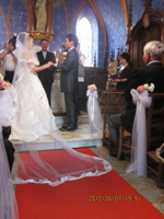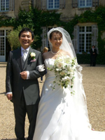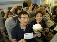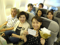 こんにちは。久しぶりに振り返りながら、レポートを書かせて頂きます。 今思い返すと「夢」のような挙式&旅行でした。我々は家族・兄弟・親友 総勢17名という多くの人々に囲まれた挙式となりました。まず、参加者が多く、藤本さんには大変お手数をお掛けしたにも関わらず、本当にご丁寧に対応して頂きました。本当に感謝しております。飛行機の手配からホテルの手配・そして旅行先のオススメのツアーやお食事面まで色々とお世話になりました。お陰様で、参加者全員から「一生記念に残る素敵な挙式&旅行だった」との感想を頂きました。 17名中、現地集合の3名を除いた14名で成田空港よりパリへ旅立ちました。飛行機の中では、ハネムーンである旨を藤本さんが事前に伝えて頂いたようで「おめでとうございます」とCAさん達が手作りのブーケを頂きました。機内にある紙で作った手作りのブーケを持ち、仲間と記念写真を撮りました。パリ到着前にしてテンションが一気にあがりました!!