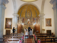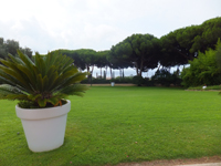 トレ・デル・ピ・チャペルを選んだのは、お花がきれいに咲いていて10月でも暖かいということ、チャペルの雰囲気がのんびりした私達に合っているなぁと思ったからです。実際、行ってみたら感動でした。貸切の邸宅にはお花がきれいに咲いていて、広い庭があり目の前には海が広がっていました。スペインにもこんな素敵な場所があったのですね。ここだけ別世界のようでした。何よりお天気に恵まれ開放的な気分になれたので、2人だけの式でしたが全く寂しくなく、終始笑顔で浮かれっぱなしでした。 |