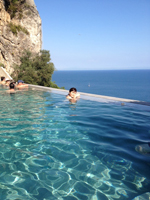 夜のウェディング・ディナーは笑いました。お酒大好きな私とは真逆で、一滴も呑めない旦那が調子に乗ってウエルカムシャンパンを美味しい!と。その後、食事を食べられなくなり、終始、私は爆笑していました。 4日目は青の洞窟へ。皆様のレポートを参考に酔い止めを飲み、自分達で何とかチケット購入!無事に辿り着きましたよ。団体ツアーと違い、異国において、自力で目的地に向かうって楽しいです。洞窟の前では1時間待ちを覚悟していたら、大勢の外国人の中、クルーザーから顔を出していた私達を即座に見つけ、カモーン!と5分で案内されました(笑)日本人はチップの関係上、優遇されるみたいです。 カプリ島を観光して、アマルフィで山田さんお勧めのお店リストで美味しいごはんをいただき、最高のバカンスでした。このお勧めリストの利用率、最後までフル活用でしたね。