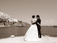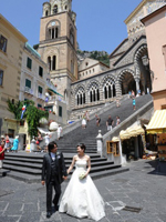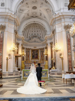 教会へ着くと、猛暑の外とは一変。中は冷んやり、とても厳かな空間で、天上が想像以上に高く、装飾が素晴らしく、こんな場所で挙式出来る事が、まるで夢のようでした。アマルフィの街中での撮影は、周りの人達に祝福されて、暑さも忘れて楽しみました。モデル気分なんて、日本じゃ考えられないですね。海外挙式ならでは満喫しました。